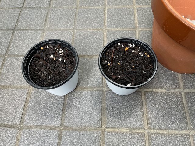 庭の蝋梅の種を取って、10粒くらいポットに植えました。